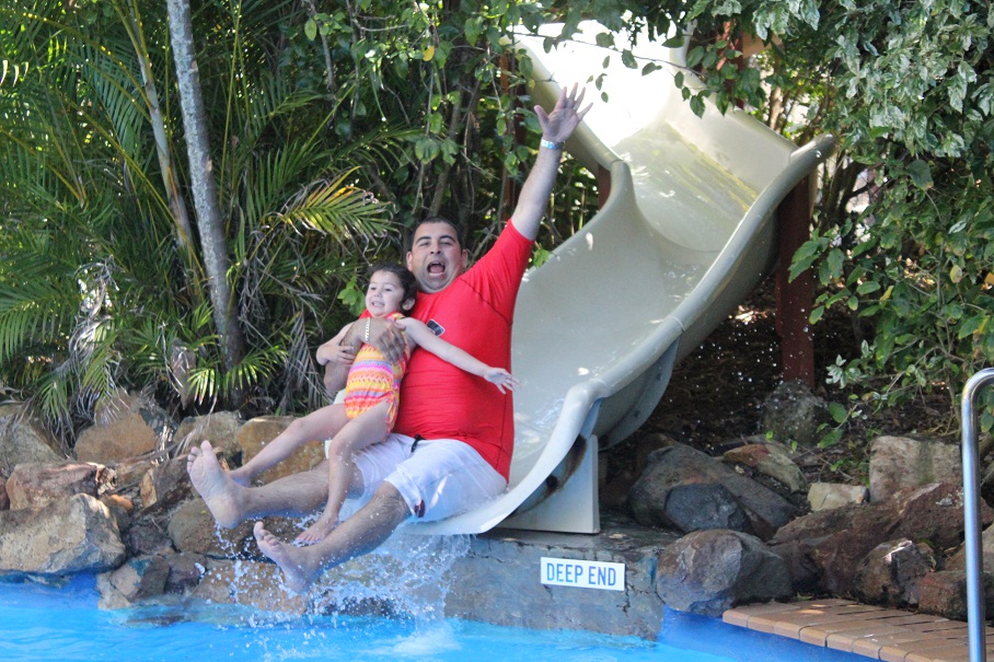 On Saturday, we enjoyed a day at the caravan park, swimming in the pools and spending hours at the water park. Joe’s parents joined us for the day, as well as for a BBQ lunch before they flew back to Sydney in the evening. Tetta even had a go on the jumping pillow! The kids also enjoyed a ride on the parks’ little red fire engine. We had a wonderful time in Cairns- a lovely place to visit.