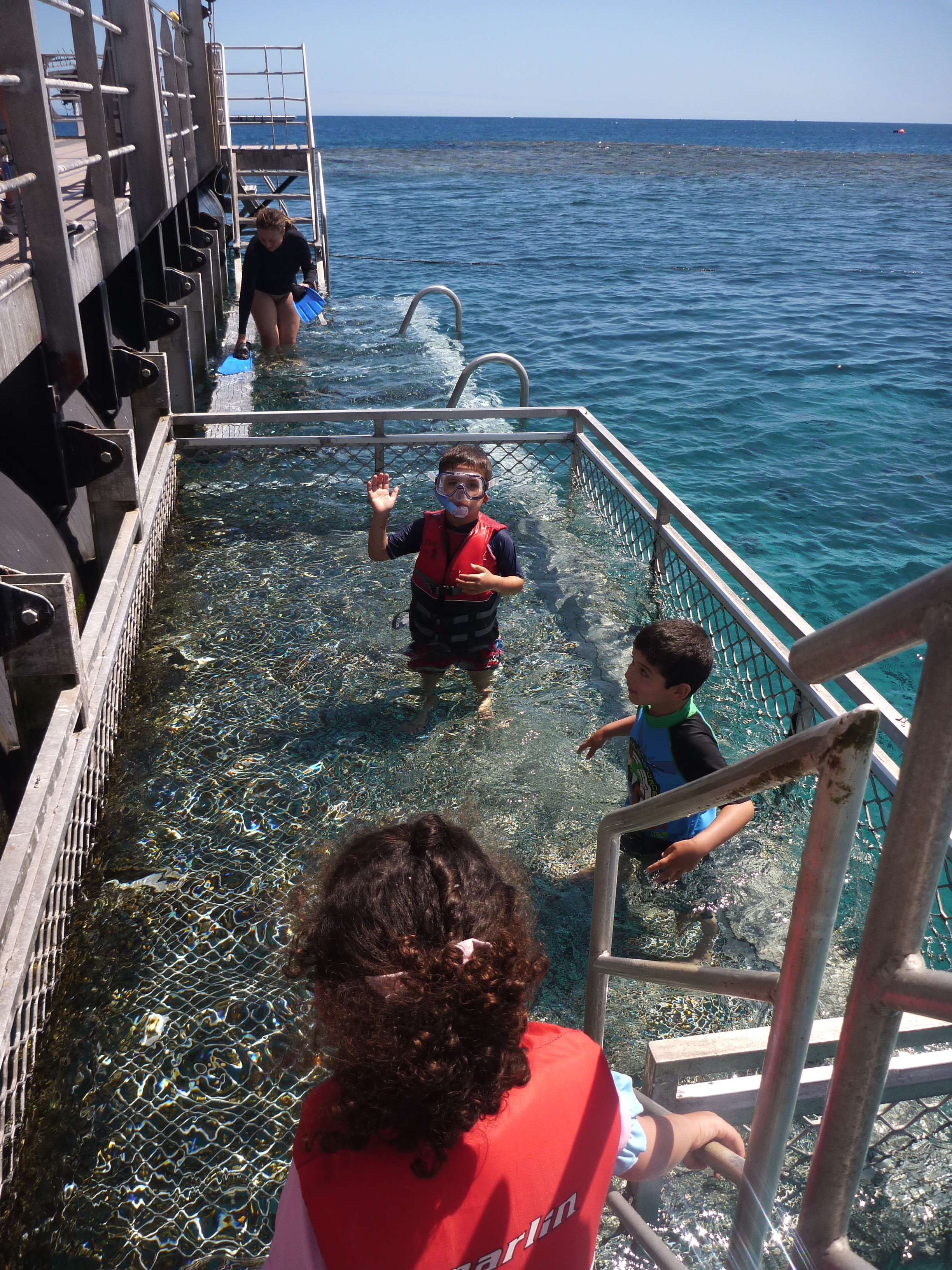 The following day, the 5 of us headed down to the marina and joined a Sunlover cruise out to the Great Barrier Reef. Based on a pontoon out at the reef, we had a wonderful day out. We all had a go snorkelling through the reef, the boys even swimming off by themselves a couple of times. Kaytlin enjoyed the kids pool area and even came out onto the reef with Melinda. She wasn’t to keen on the snorkel, but used the goggles and flippers a couple of times.