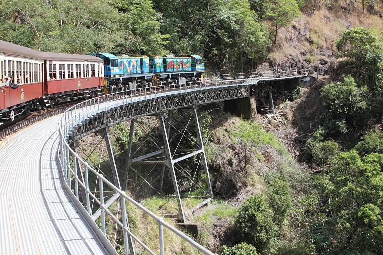 The following morning, we all headed up to Karanda via the scenic railway. It was a lovely trip through the rainforest and it was amazing to go past the Barron Falls. At Karanda, we meandered through the shops and enjoyed mango smoothies and watched some sweet making. You could also visit the butterfly farm and river, but we were all having one of those hot and bothered days! So we joined the skyrail and headed back down the mountain. The Skyrail was absolutely amazing and treks over 7.5km of rainforest. There are 2 stations to get off at during the journey. At the first stop, we followed a board walk through to a couple of lookouts towards Barron Falls, as well as some hands on interaction at the Rainforest discovery centre. At the second station, we joined a ranger for a short guided walk through the dense rainforest. Coming down the mountain on the final leg of the Sky rail was stunning. Whilst the whole day was on the pricey side, it is quite a unique trip and a must-do when visiting Qld.